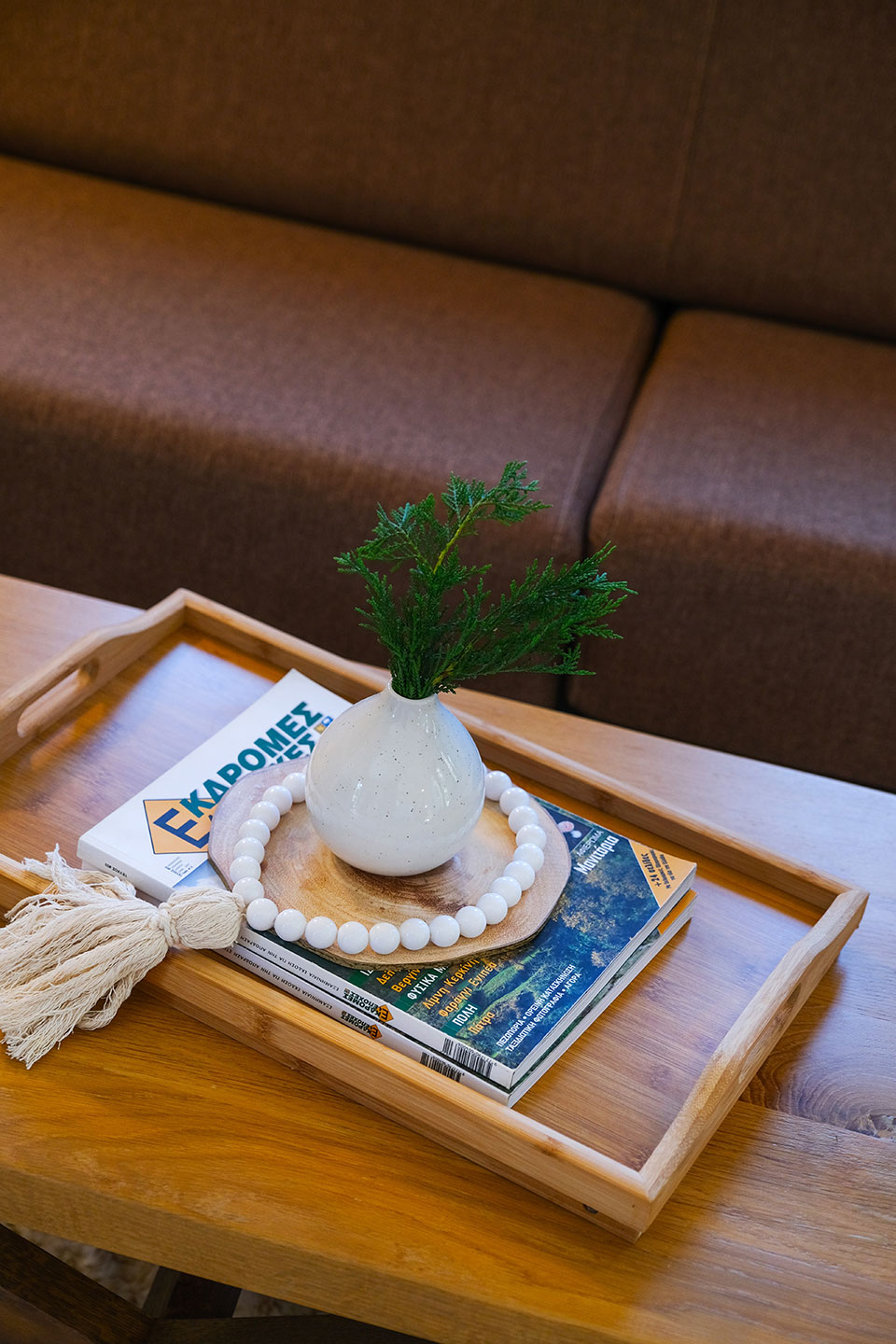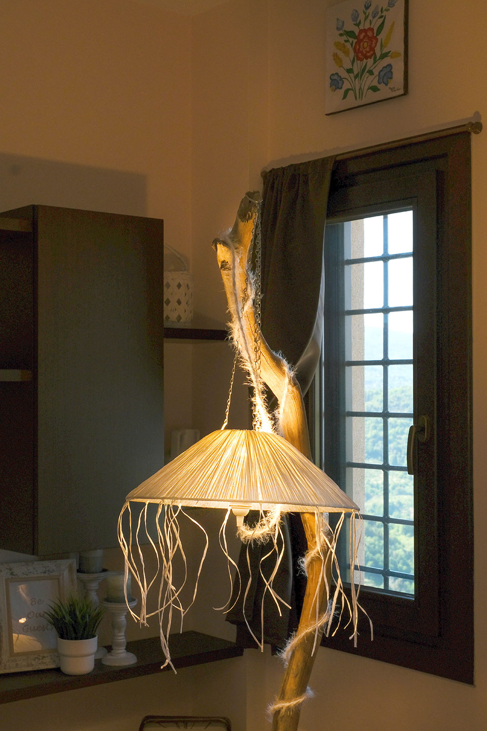 Adjacent to the kitchen you will find the dining area and the sitting area. The monastery-style, beechwood dining table is the perfect place for the whole family or friends to gather around and experience quality moments together at meal time.